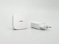 The Tedee Bridge connects to Tedee GO2 and Tedee Keypad via Bluetooth and links them to your local Wi-Fi network. For optimal performance, position it within 2 meters of your Tedee devices. Choose a Tedee Bridge product version compatible with your local plug type: European, American, British, or Australian.